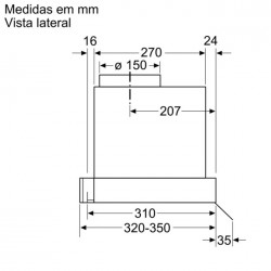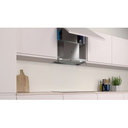 Inox Classe de eficiência energética: A Controlo mecânico Vidro de proteção contra fumo e vapor Botão central oculto Iluminação LED 3 níveis Potência máxima de extração: 620 m3 h Potência sonora no nível 3: 63 dB(A) Filtros de alumínio laváveis na máquina de lavar louça Válvula de retenção incluída Largura: 60cm