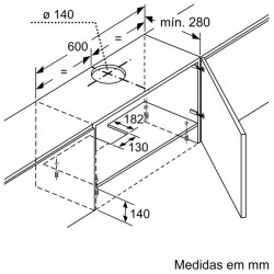 Distância mínima da placa a gás