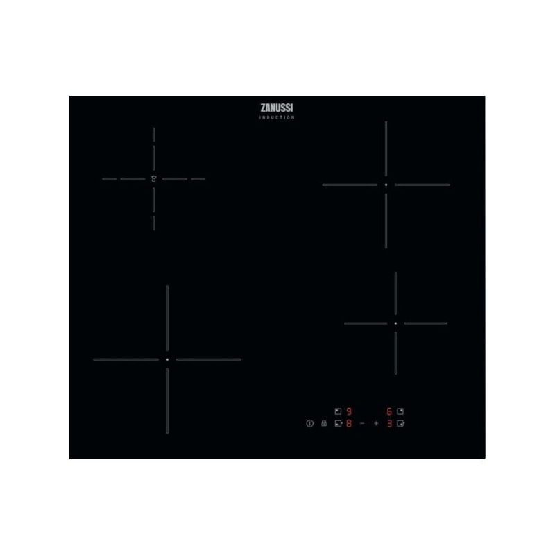 Placa de Indução ZITN641K da Zanussi de 60 cm com 4 focos, controlo tátil deslizante, temporizador, desconexão automática, segurança para crianças, indicador de calor residual, Função PowerBoost, 6600W.
