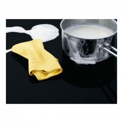 A tecnologia de indução aquece apenas a base da panela e mantém a área circundante fria. Uma vez que a superfície é totalmente macia, é fácil limpá-la com um pano húmido.